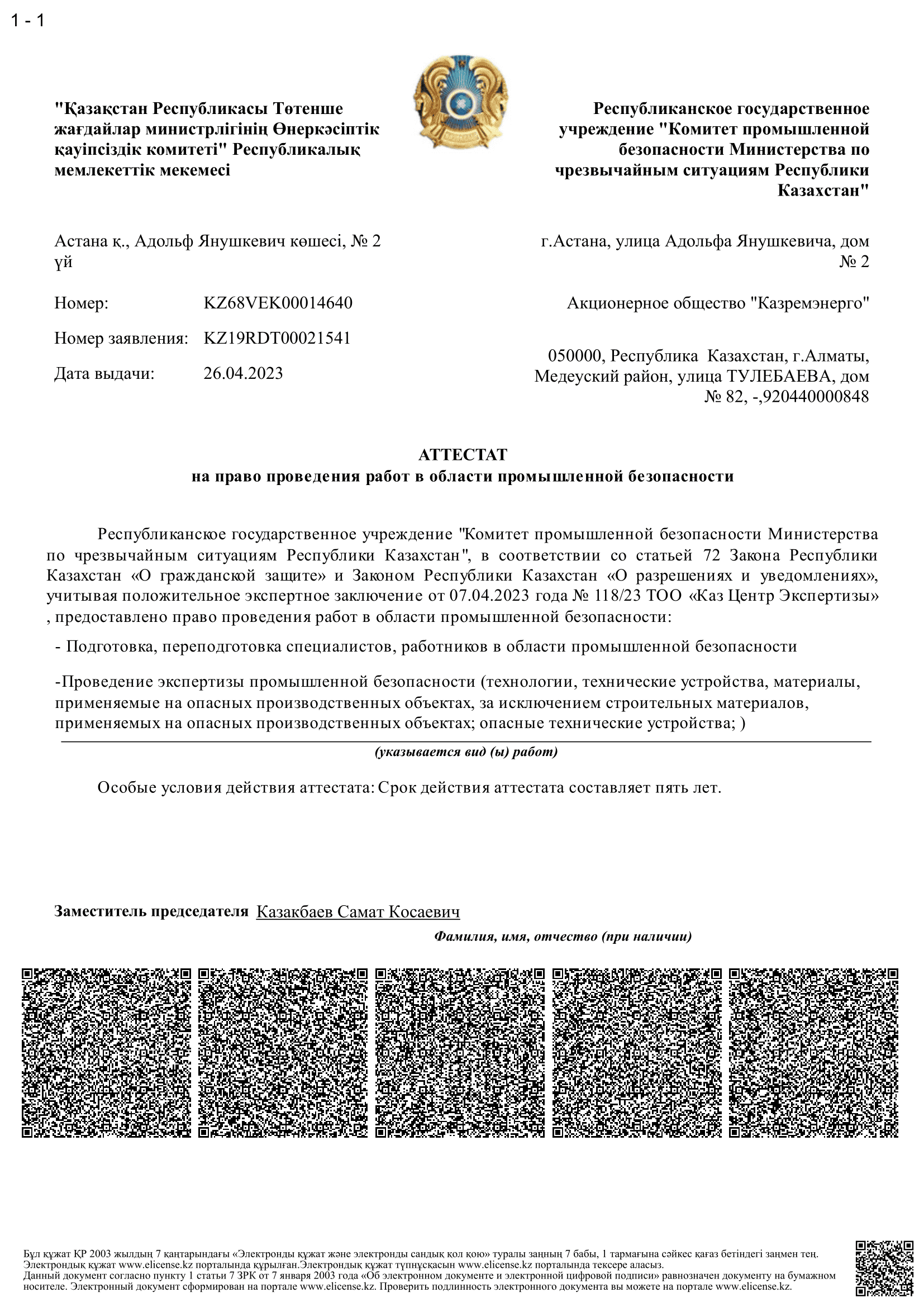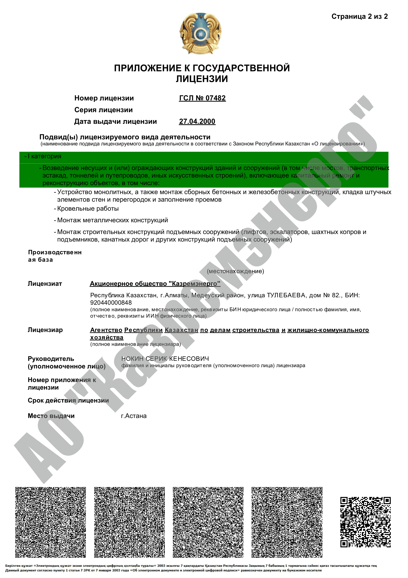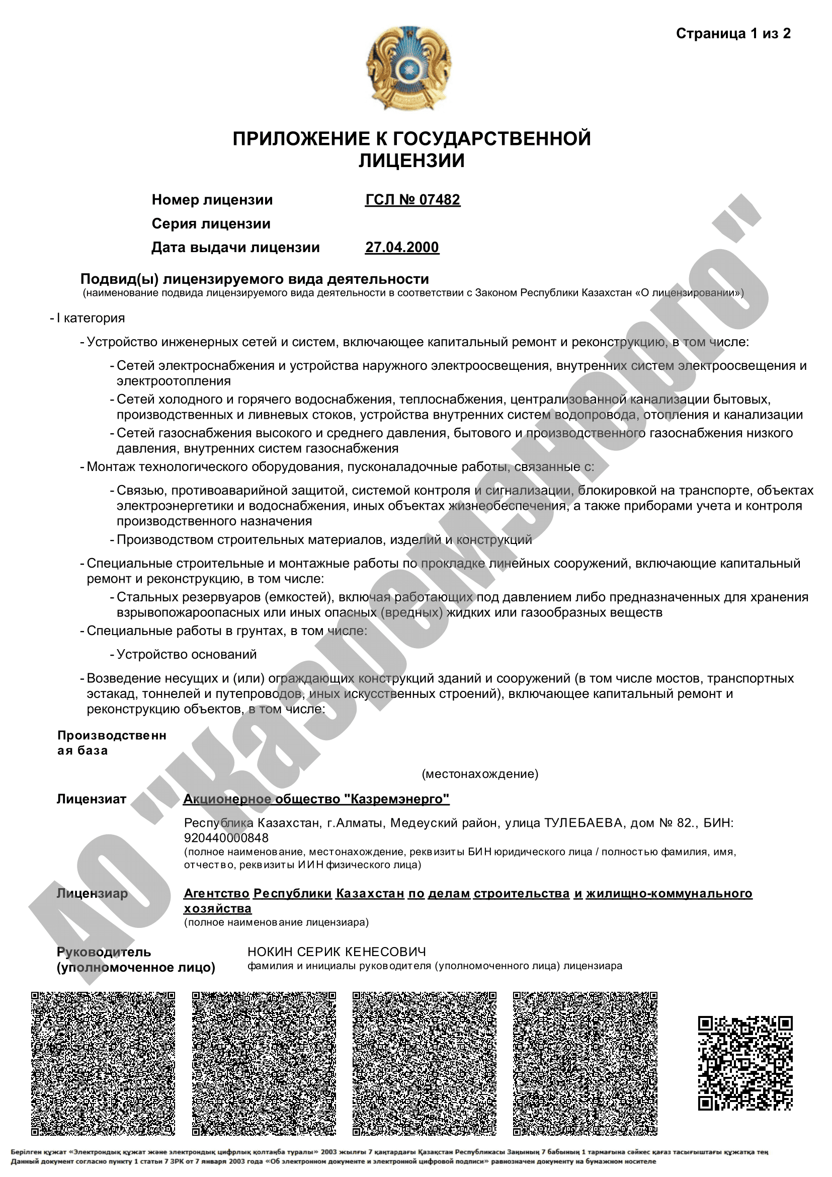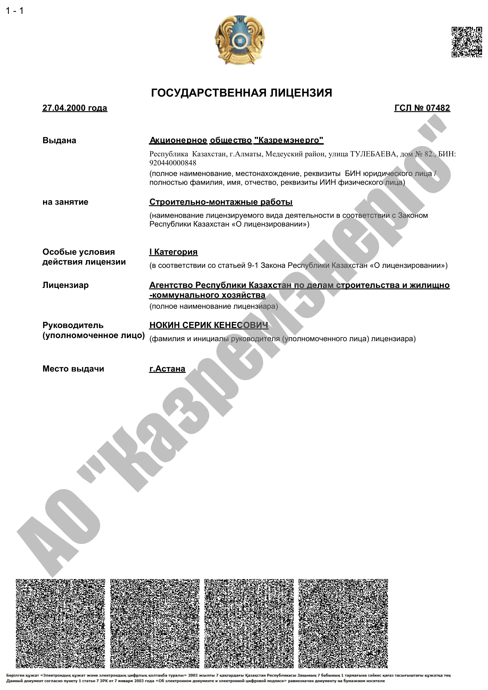 АО «Казремэнерго» имеет полный комплект необходимых разрешительных документов и лицензий на все виды работ по номенклатуре предоставляемых услуг