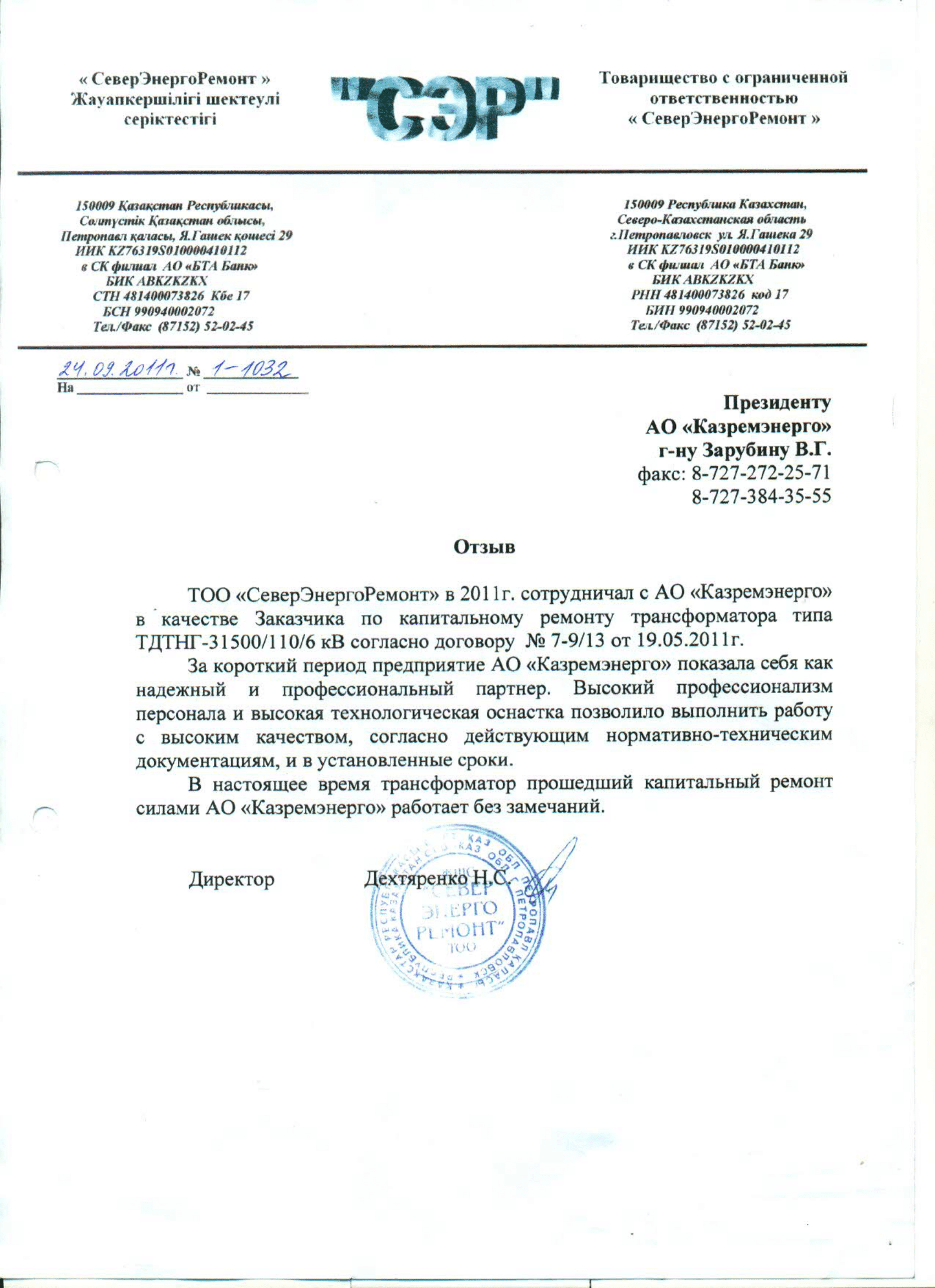 АО «Казремэнерго» основано в 1958 году как специализированное предприятие по ремонту, монтажу и наладке энергетического оборудования в Казахстане и Средней Азии
